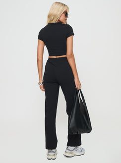 - Mid-rise pants, straight leg, elasticated drawstring waist