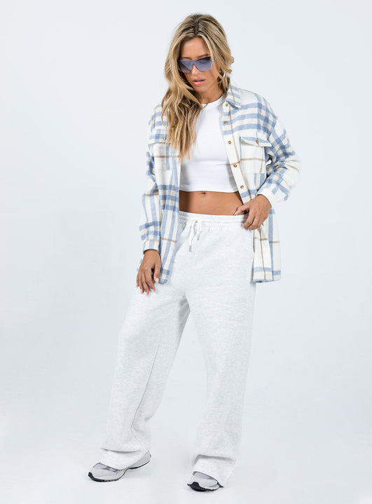 Oversized shirt Soft flannelette material Plaid print Button front fastening Twin chest pockets Single button cuff