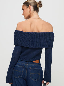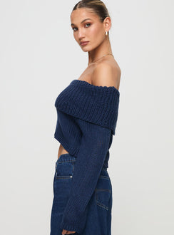 Milky way off shoulder knit sweater blue