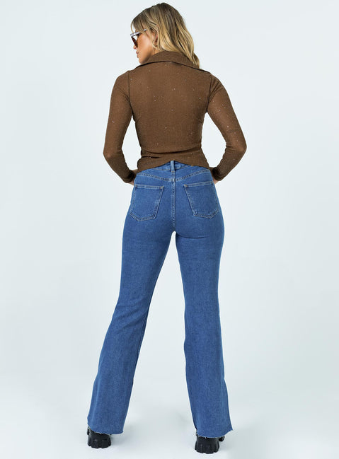 Motel split bootleg jeans mid wash