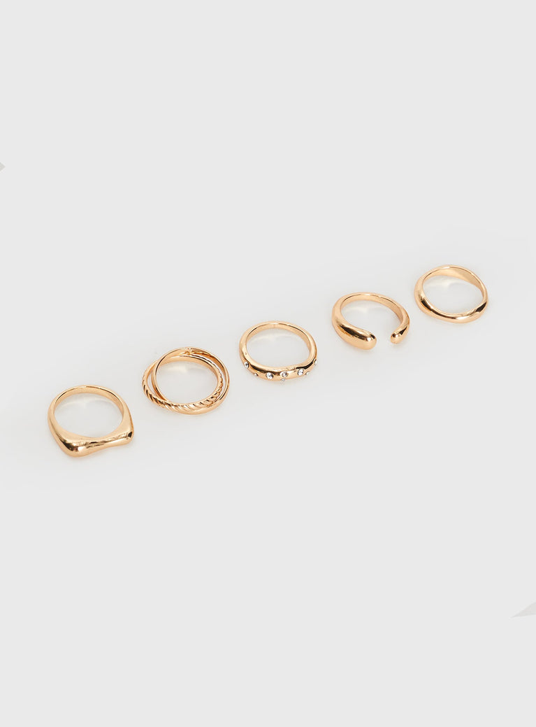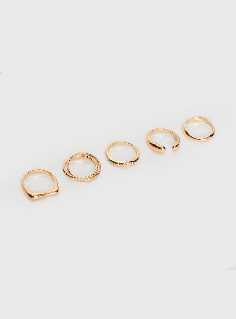 Gold-toned ring pack Pack of five, diamante detail