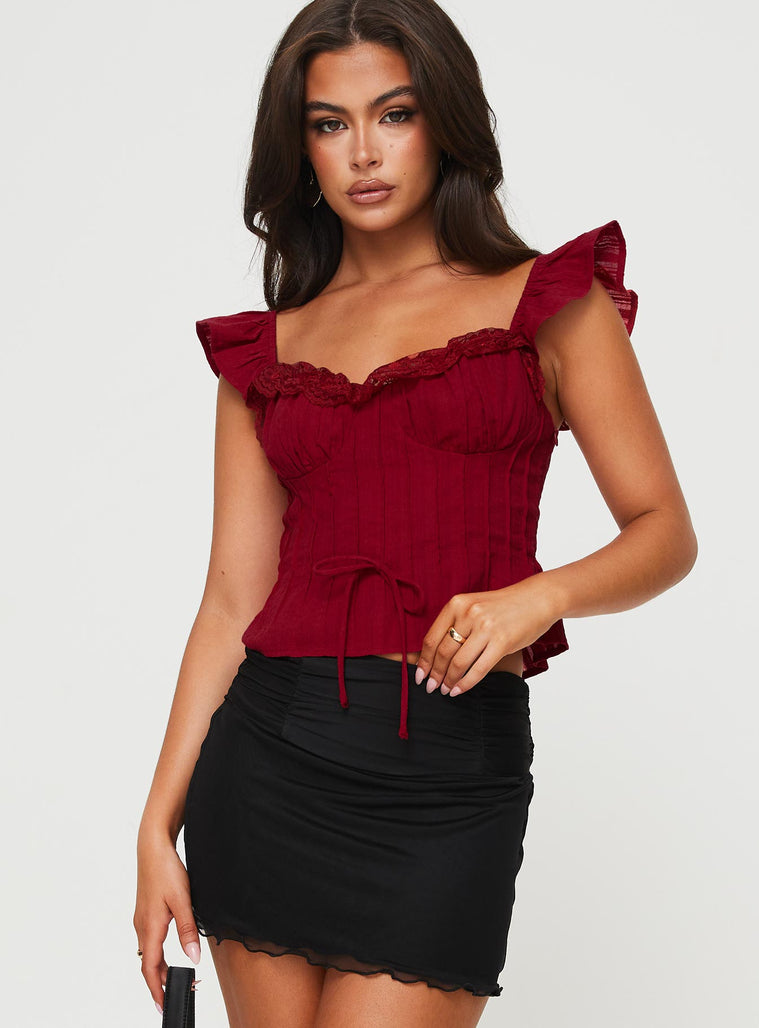 - Lace trim, cap sleeve, sweetheart neckline, invisible zip fastening at side, shirred band at back