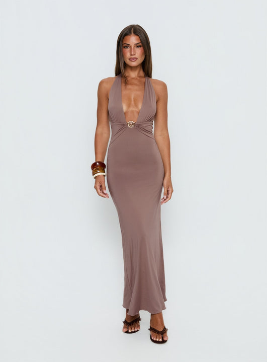 - Halter maxi dress with ruched detail