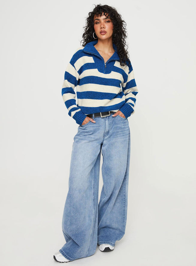 Neena quarter zip jumper blue / cream