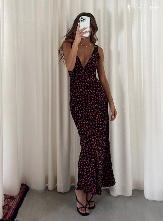product Princess Polly V-Neck  Nellie Maxi Dress Black/Red Floral