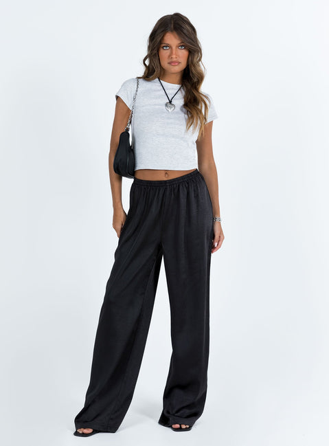 Black pants Silky material  Elasticated waistband  Wide leg  Non stretch Unlined