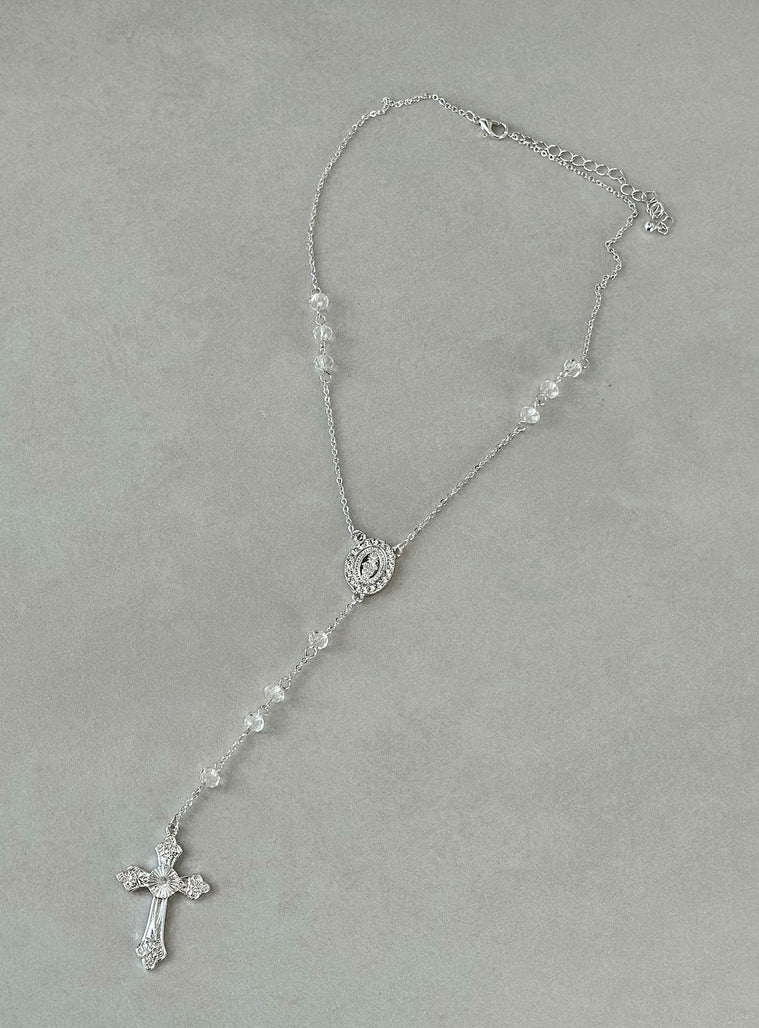 Necklace Silver toned Cross charm Bead detail Lobster clasp fastening