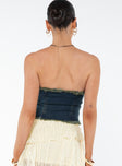 - Mid wash denim, invisible zip fastening, raw edge hem