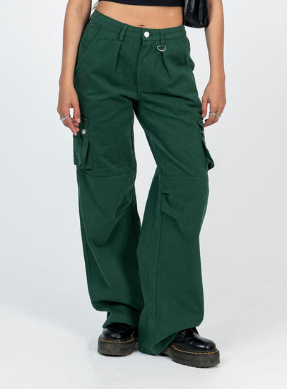 - Belt looped waist, button & zip closure, cargo pockets, subtle pleats at waist