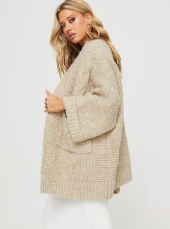 Paisleigh Cable Knit Cardigan Beige