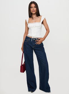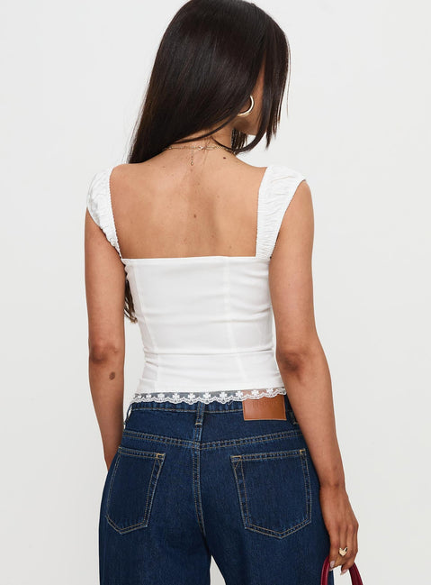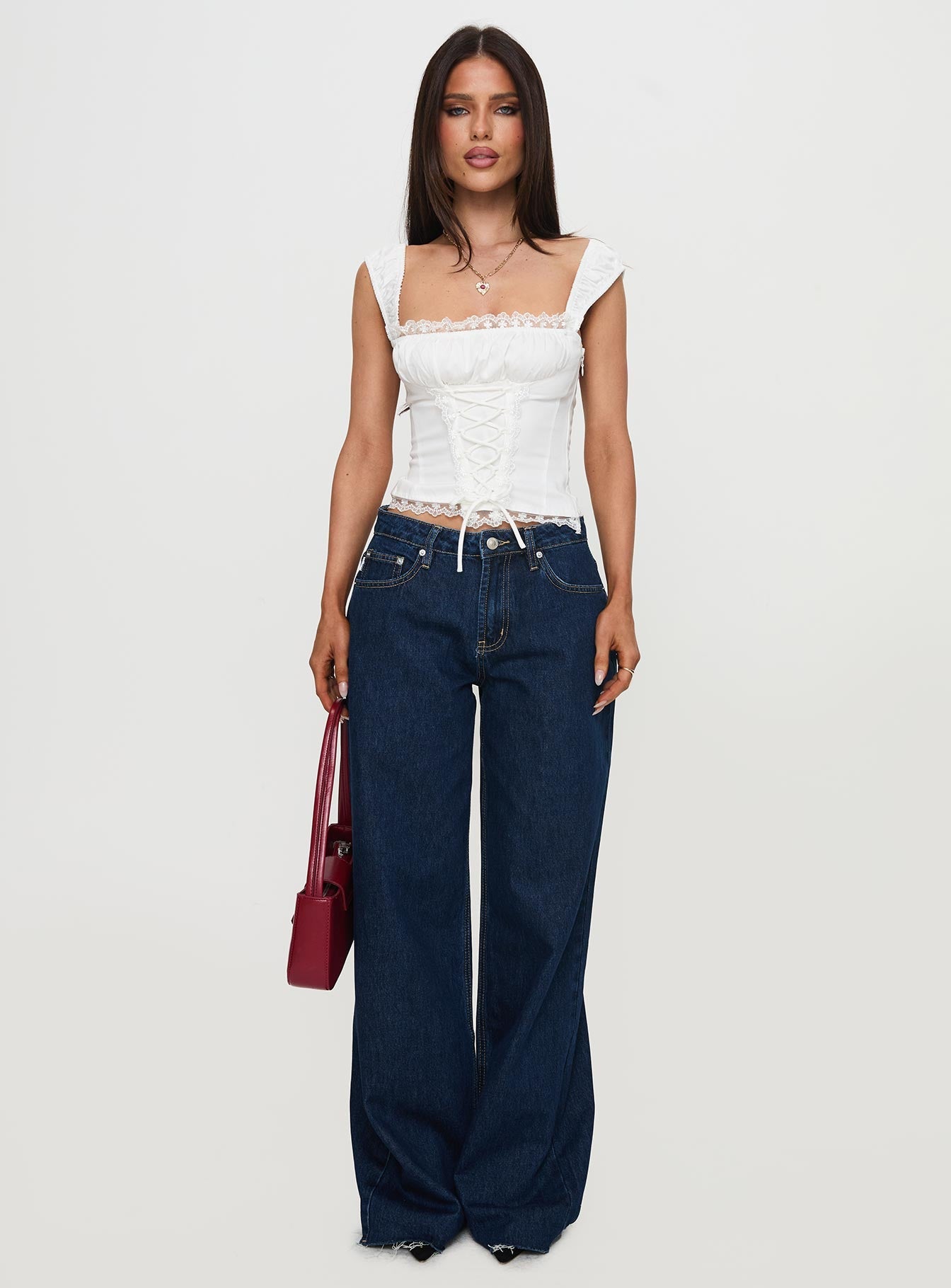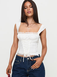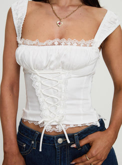 - Elasticated shoulder straps, square neckline, lace trim & hem, ruched bust, lace-up fastening, invisible zip fastening at side