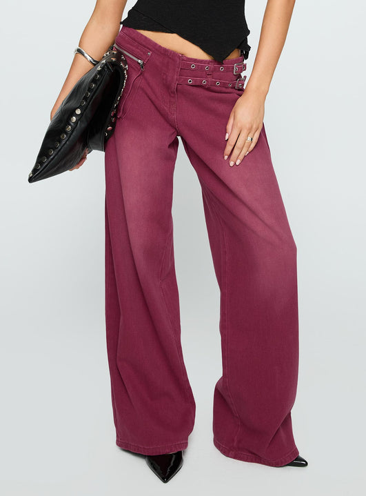 Paltrow mid rise wide leg cargo jeans washed burgundy