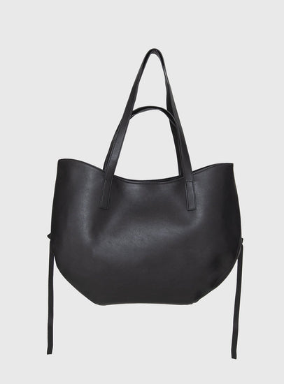 Bag  Shoulder bag style, faux leather Two different size fixed straps, clasp fastenings at sides of bag, three inner pockets one with zip fastening, tassel detail at sides Inner-center magnetic clasp fastening