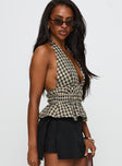 Perpetua halter neck top brown / black check