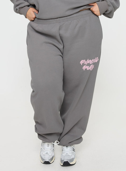 Princess Polly Track Pants Puff Text Charcoal Curve has a rating of 5.0 stars based on 5 reviews.