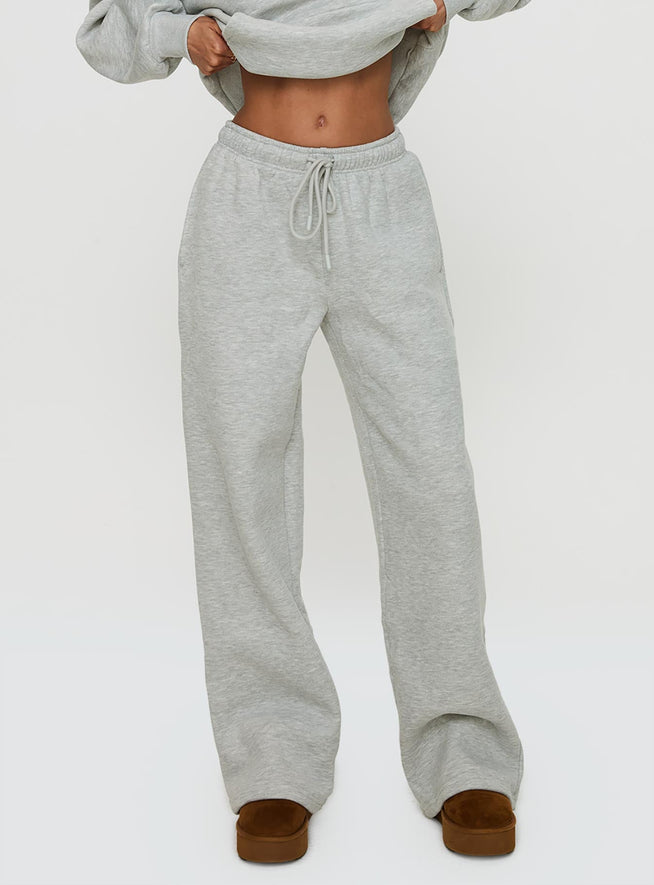 Princess Polly Wide Leg Track Pant Bubble Text Grey Marle / Green has a rating of 4.9 stars based on 14 reviews.