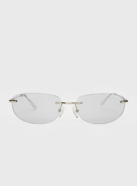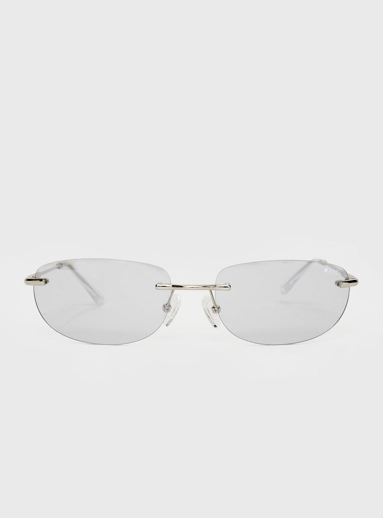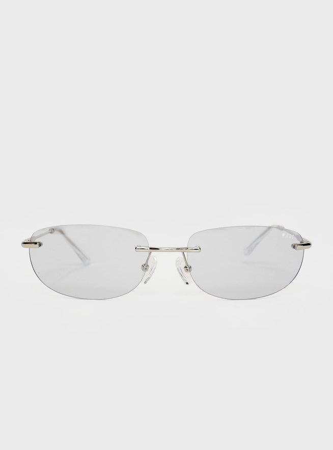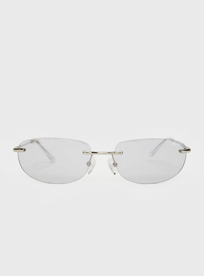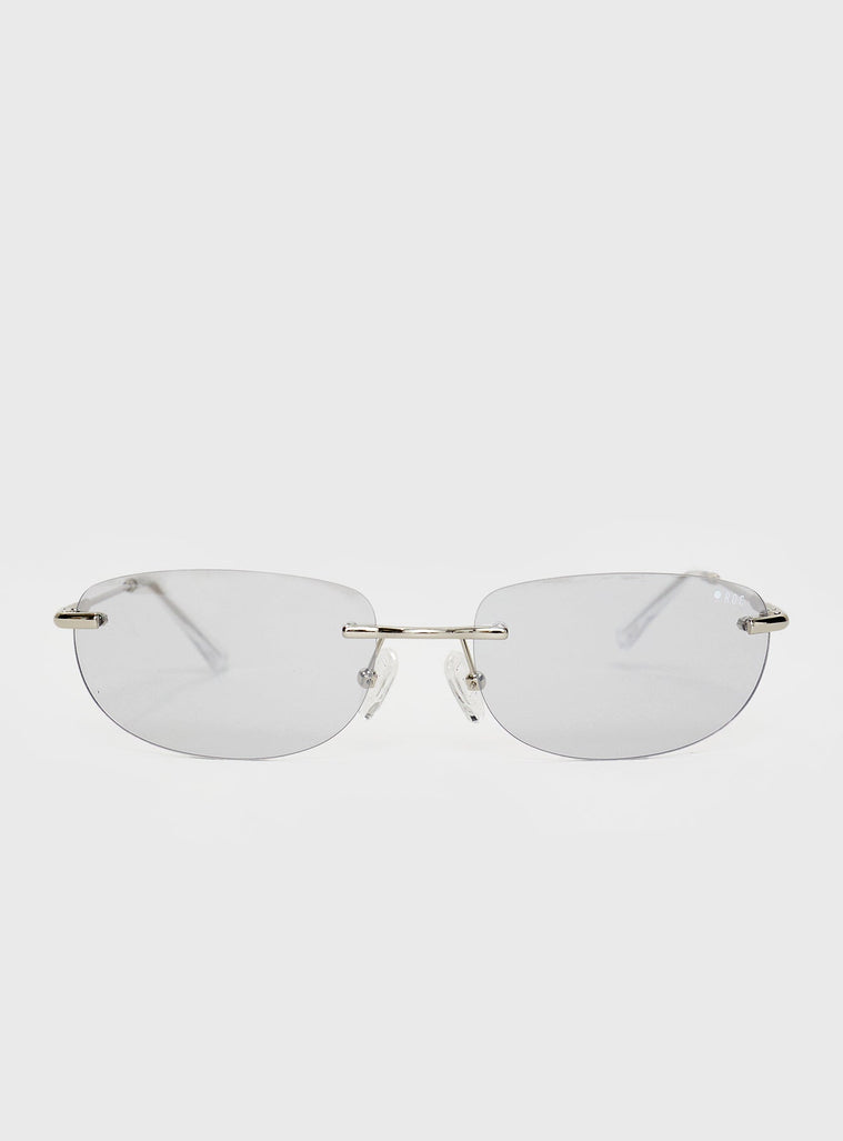 - Frameless, grey-tinted lenses, slim silver-toned arms, silicone nose pads