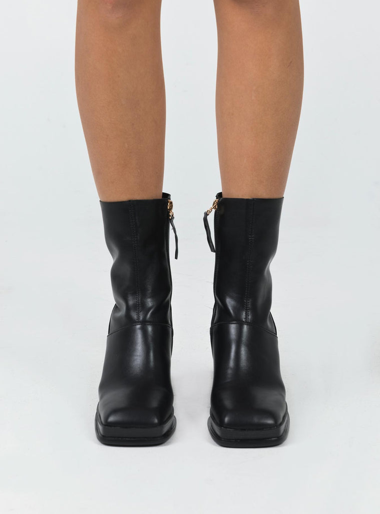 Boots Faux leather material  Zip fastening at side  Square toe  Platform base  Block heel