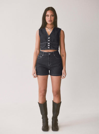 Rathlyn Pinstripe Vest Dark Denim has a rating of 4.9 stars based on 12 reviews.