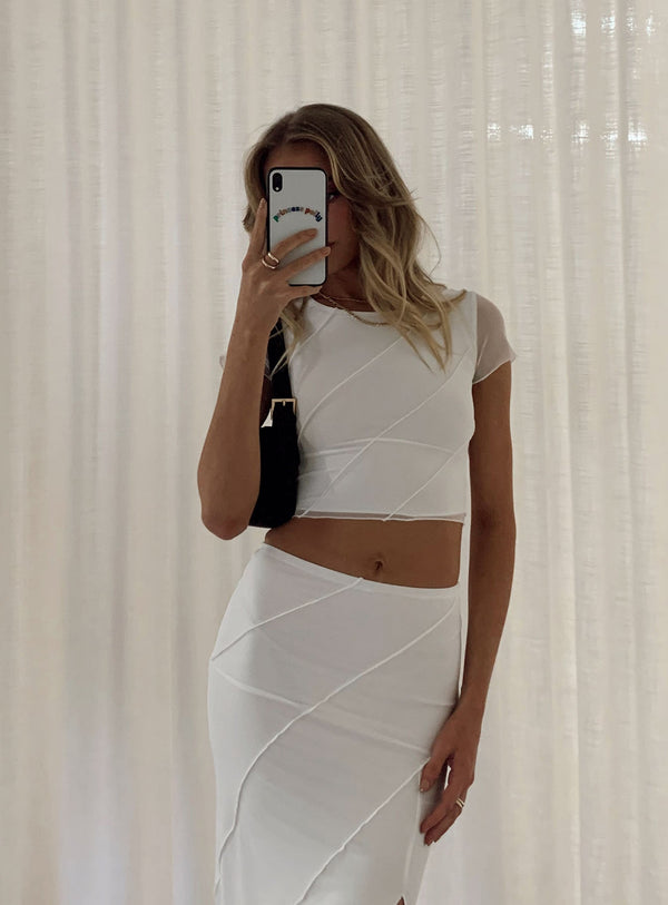 front view of model wearing Princess Polly Erika Midi Skirt White Midi Skirts