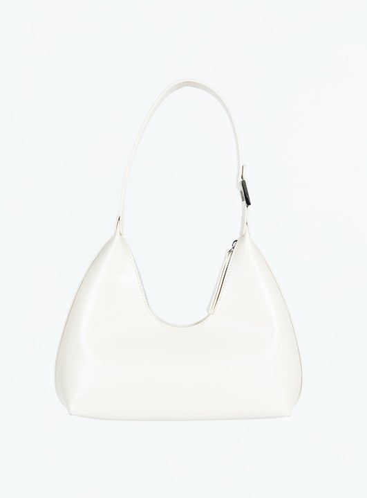 Faux leather shoulder bag Fixed shoulder strap, zip fastening, silver-toned hardware, flat base