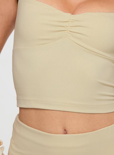 Beige Matching set Fixed straps, pinched bust, elasticated waistband, high split in hem at back