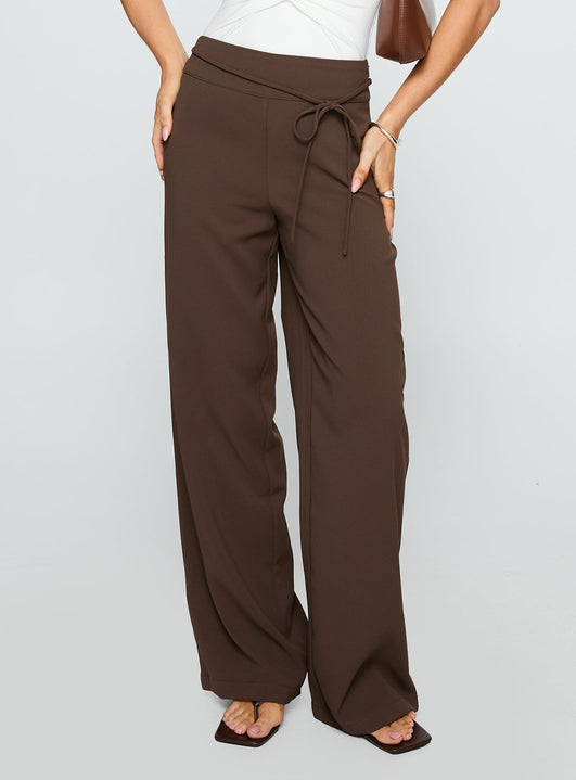 - Stripe design, zip closure at side, wide-leg cut, mid-rise fit