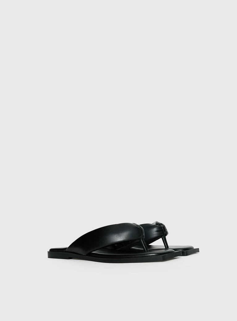 - Faux leather, square toe, padded footbed, slip-on style, thick straps