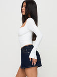 side view of model wearing Princess Polly Ryver Denim Wrap Skort Dark Wash Mini Skirts