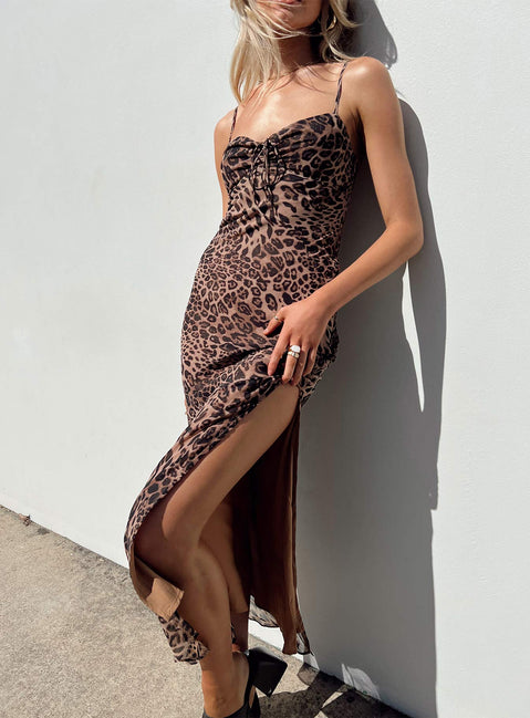 Princess Polly Sweetheart Neckline  Safari Midi Dress Leopard