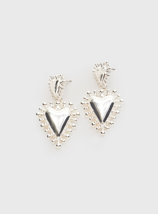 Silver-toned earrings Drop design, heart-shaped charm, stud fastening