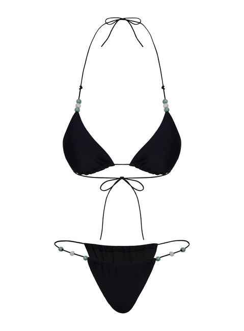 Saltwater bead detail bikini bottoms black