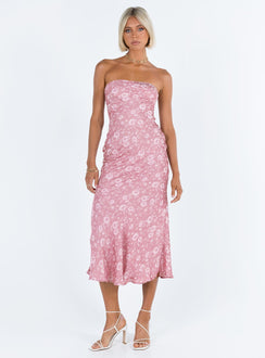 - Strapless Midi dress, slim fitting, silky material, floral print