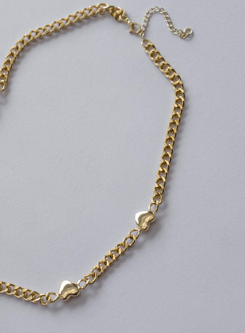 Necklace Lobster clasp fastening Gold-toned Heart charms
