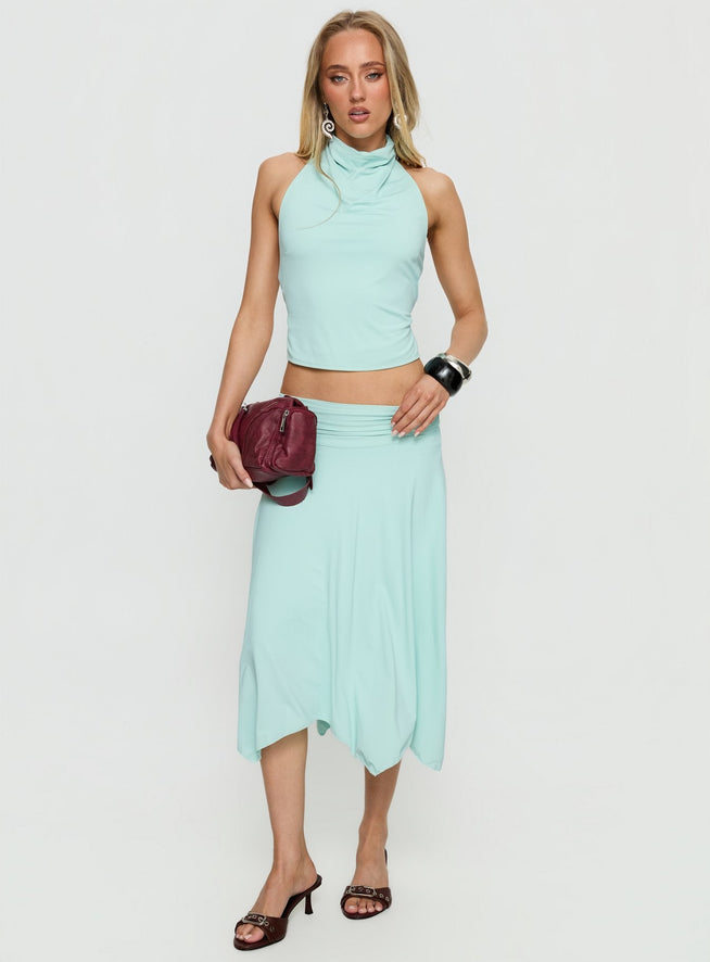 - Midi skirt with asymmetrical detailing & a mid-rise fit