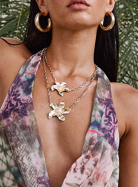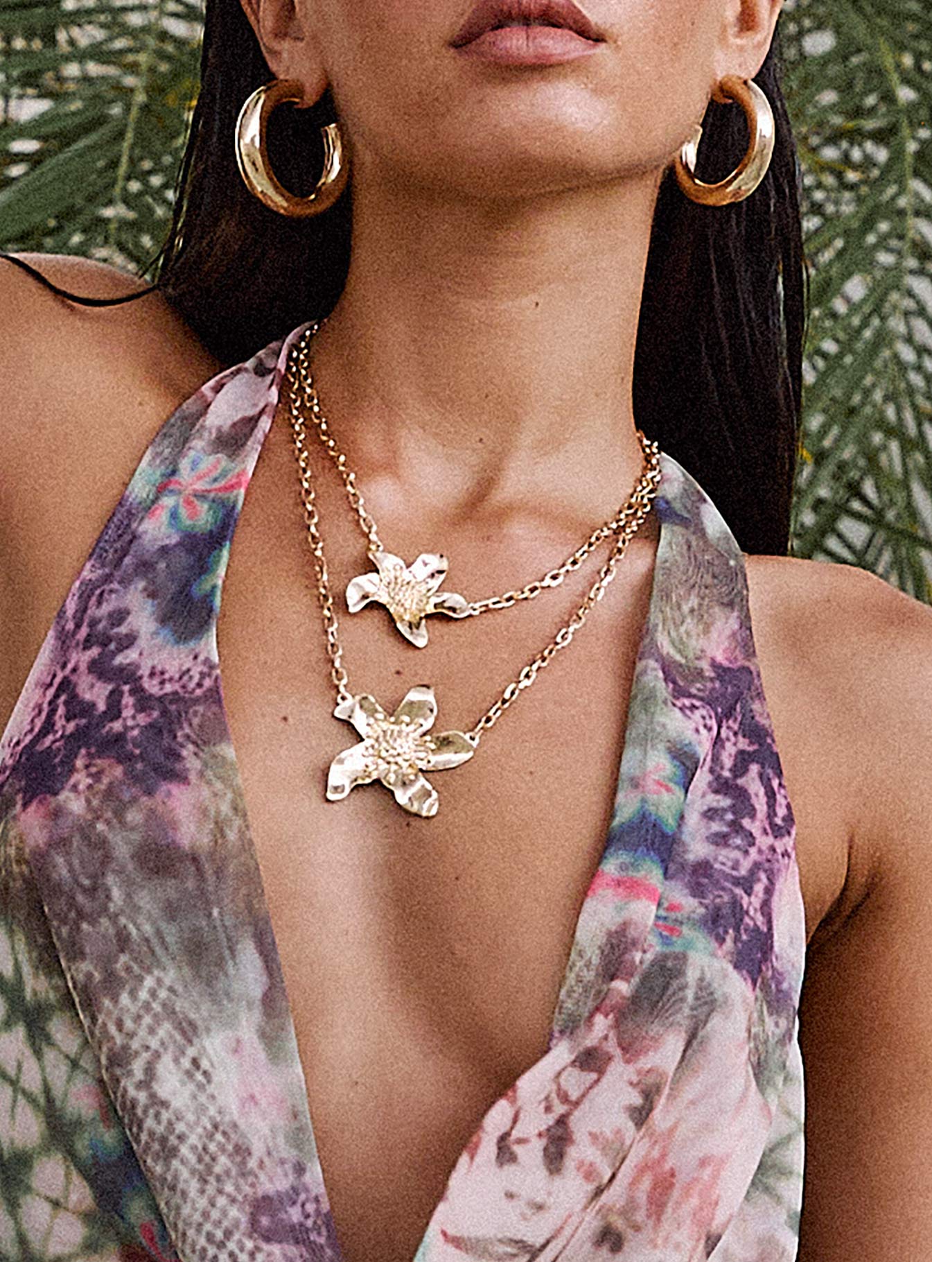 - Flower design, gold-toned hardware, lobster clasp fastening, adjustable length, can be worn individually