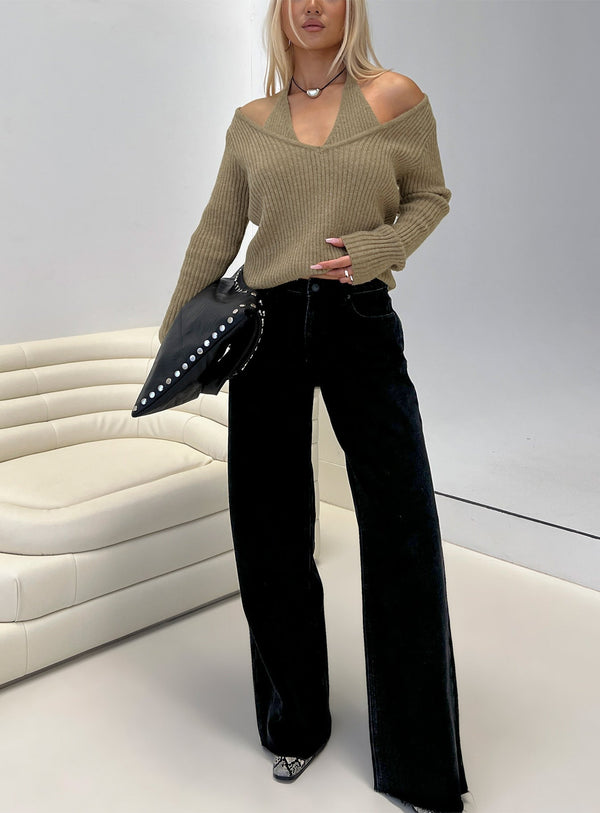 - Fixed layered style, v-neckline, adjustable halter straps, drop shoulders