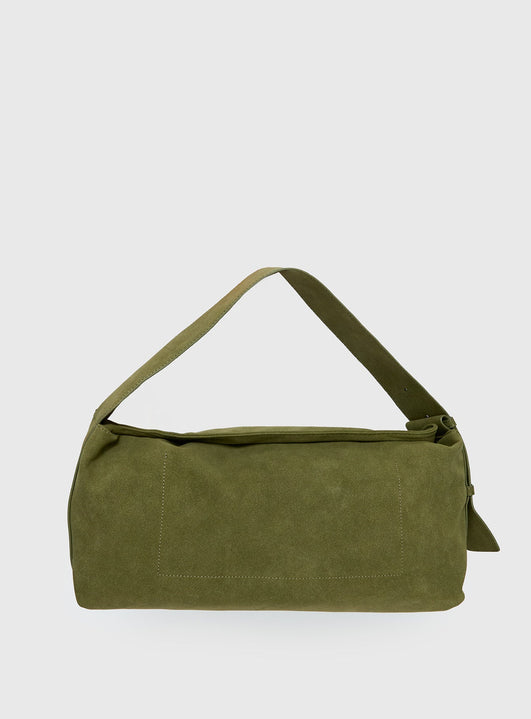 - Faux suede shoulder bag