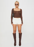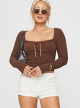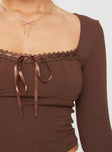 - Sweetheart neckline, lace trim, cropped style, bow detailing at bust