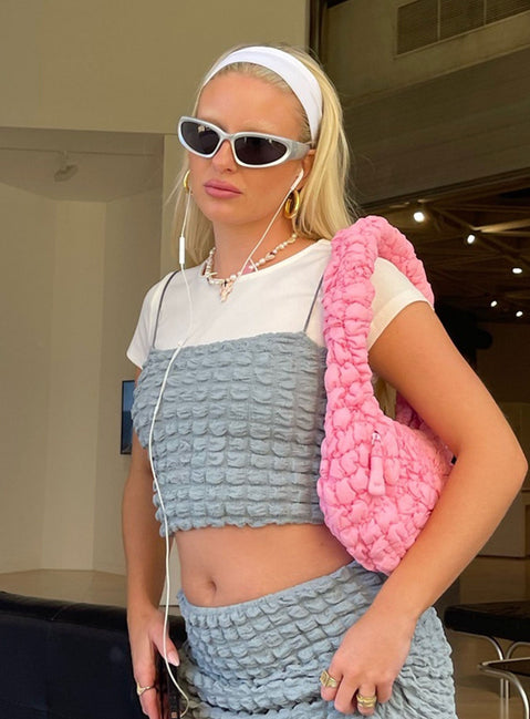 Front view of model wearing  front Princess Polly Sleeveless Square Neck  Shauna Top Blue