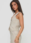 - V-neckline, button fastening at front, split hem, adjustable silver buckle strap at back