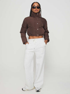 - Puffer style, high neckline, silver-toned button down & zip fastening, elasticated band at cuffs, a djustable drawstring around waist, two hip pockets, contrast stitching detail
