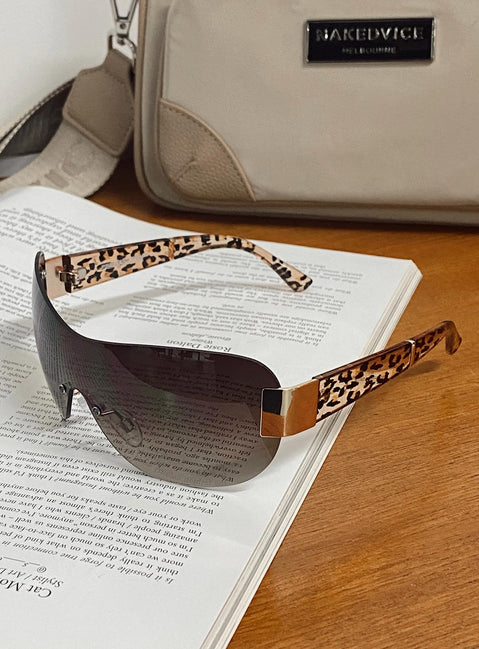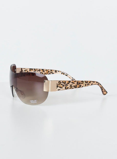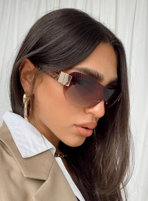 Sunglasses  Princess Polly Exclusive UV 400 Frameless design  Gradient tinted lenses  Adjustable silicone nose pads  Leopard print arms  Gold-toned hardware