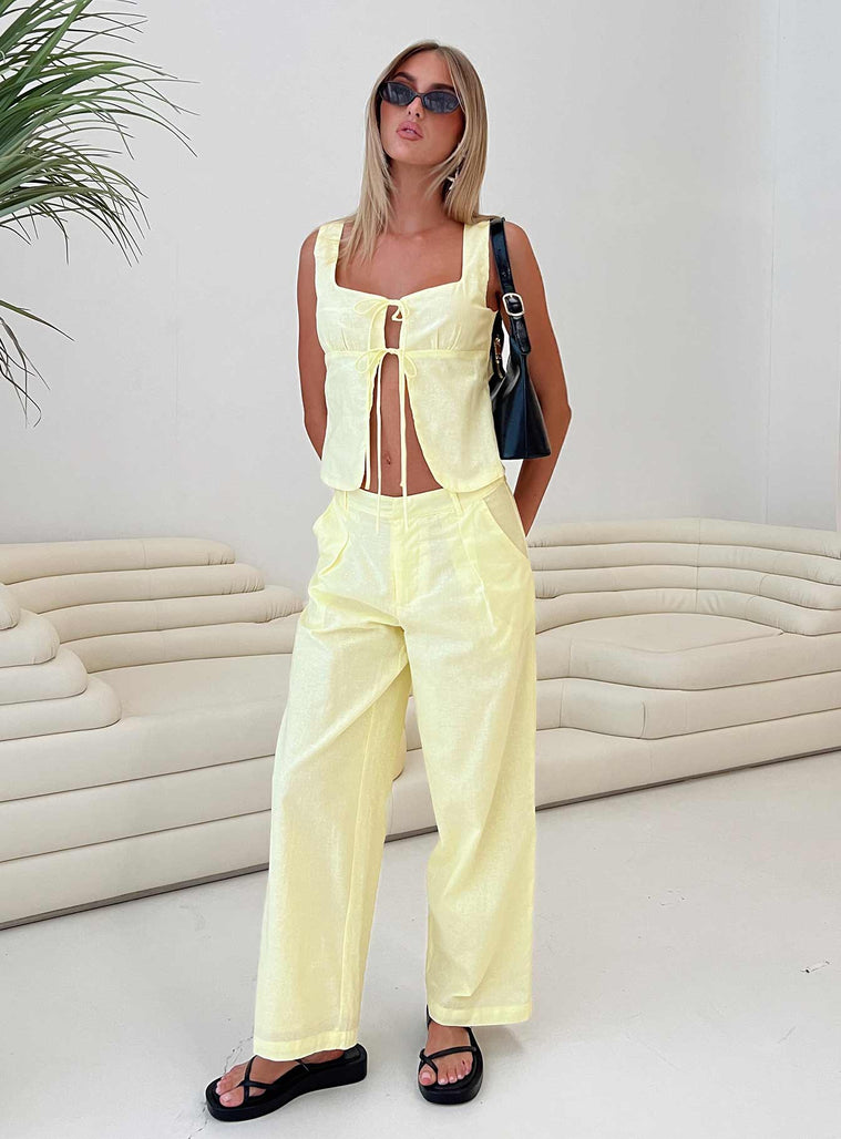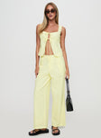 - Square neck, ruched bust, double tie closure, split hem, fixed straps, button & invisible zip fastening, twin hip pockets, straight leg, mid-rise fit