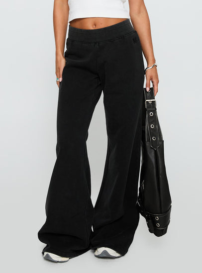 - Washed black, elasticated waistband, embroidered brand detail, wide-leg