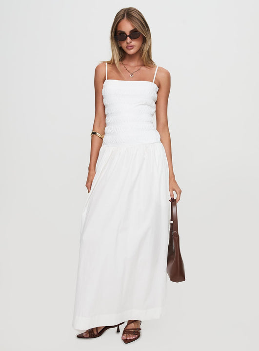 https://www.princesspolly.com.au/products/sweetgum-shirred-maxi-dress-white
