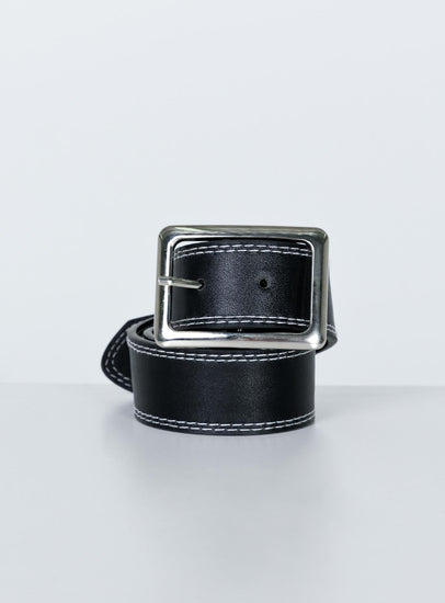 Waist belt Princess Polly Exclusive Contrast stitching Large rectangular buckle Silver toned hardware