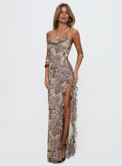 Sympathize Frill Split Maxi Dress Multi has a rating of 4.6 stars based on 12 reviews.