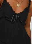 back view of model wearing Princess Polly Taini Top Black Sleeveless V-Neck