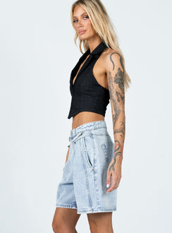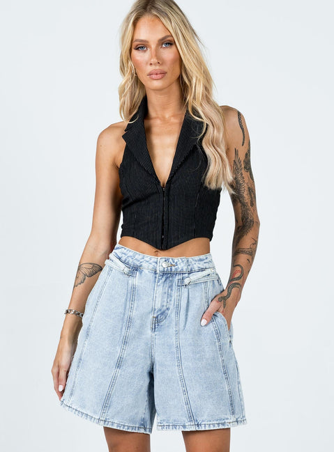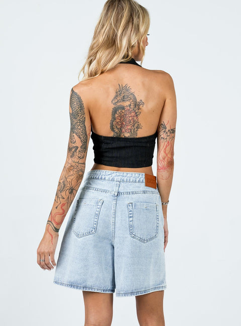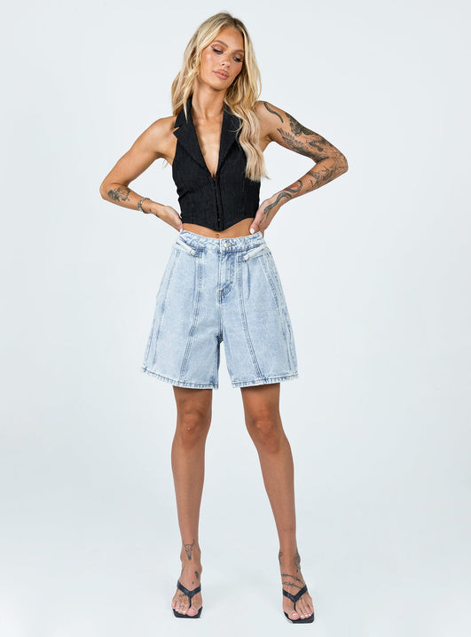 Blue Denim shorts Relaxed fit 100% cotton Length of size US 4 / AU 8 waist to hem: 47cm / 18.5" Light wash denim High waisted Longline design
